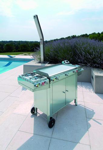 barbecue a gas modello planet 78 con piastra di cottura cm.78 con friggitrice e fornello laterale con carrello chiuso