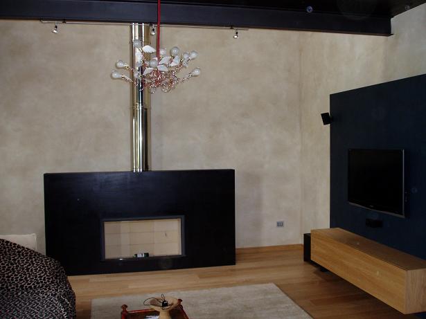 monoblocco stuv 21/125 rivestito in accio corten colore ruggine,montato con tubo doppia parete inox a vista