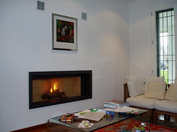 caminetto stuv 21/135 montato con profilo e controprofilo a 4 lati color antracite