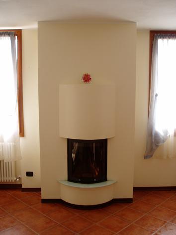 caminetto clam favilla pivot verticale vetro tondo,rivestito in cartongesso tondo con base in vetro