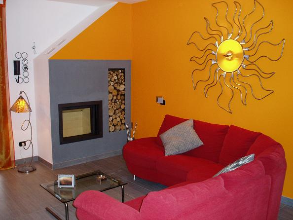 caminetto stuv 21/75 con profilo e controprofilo a 4 lati,rivestito in cartongesso e nicchia porta legna