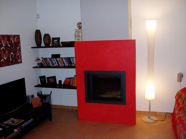caminetto stuv 21/75 con profilo e controprofilo a 4 lati color antracite,rivestito in cartongesso
